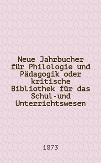 Серии: ; Neue Jahrbucher für Philologie und Pädagogik oder kritische Bibliothek für das Schul-und Unterrichtswesen
