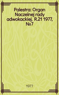 Palestra : Organ Naczelnej rady adwokackiej. R.21 1977, №11(239):. - 1977
