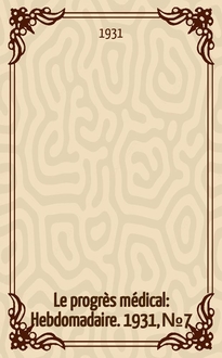 Le progrès médical : Hebdomadaire. - 1897 Диссертация