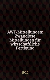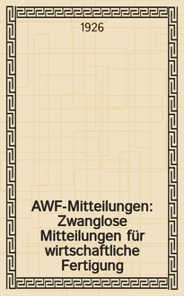 AWF-Mitteilungen : Zwanglose Mitteilungen für wirtschaftliche Fertigung (AWF) beim Reichskuratorium für Wirtschaftlichkeit. Jg.8 1926, H.7:. - 1926