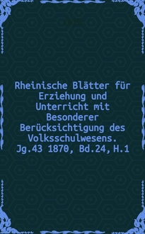 Серии: ; Rheinische Blätter für Erziehung und Unterricht mit Besonderer Berücksichtigung des Volksschulwesens