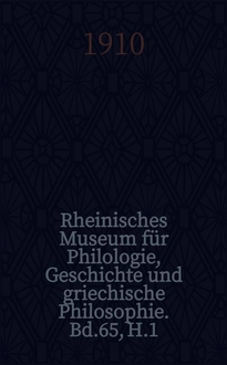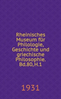 Серии: ; Rheinisches Museum für Philologie, Geschichte und griechische Philosophie