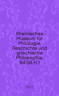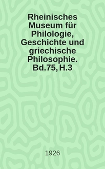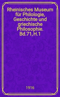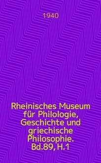 Серии: ; Rheinisches Museum für Philologie, Geschichte und griechische Philosophie
