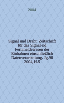 Signal und Draht : Zeitschrift für das Signal -und Fernmeldewesen der Einbahnen einschließlich Datenverarbeitung. Jg.96 2004, H.9