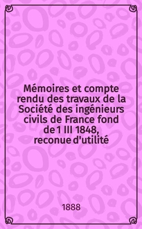 Серии: ; Mémoires et compte rendu des travaux de la Société des ingénieurs civils de France fond de 1 III 1848, reconue d'utilité