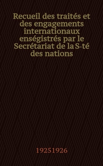 Серии: ; Recueil des traités et des engagements internationaux enségistrés par le Secrétariat de la S-té des nations