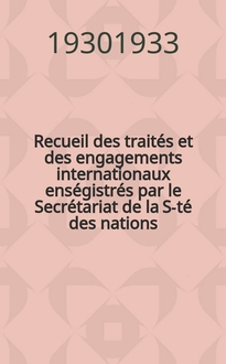 Серии: ; Recueil des traités et des engagements internationaux enségistrés par le Secrétariat de la S-té des nations