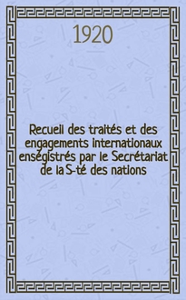 Серии: ; Recueil des traités et des engagements internationaux enségistrés par le Secrétariat de la S-té des nations