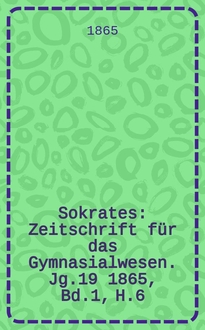 Sokrates : Zeitschrift für das Gymnasialwesen. Jg.32(52) 1898, H.5