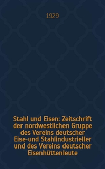 Stahl und Eisen : Zeitschrift der nordwestlichen Gruppe des Vereins deutscher Eisen- und Stahlindustrieller und des Vereins deutscher Eisenhüttenleute / Hrsg. von der Vereinsvorständen. Jg.49 1929, H.16:. - 1929