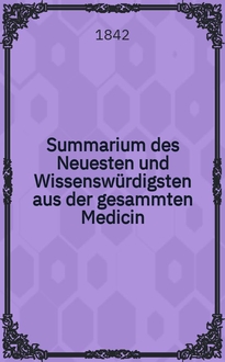 Summarium des Neuesten und Wissenswürdigsten aus der gesammten Medicin : Zum Gebrauche praktischer Aerzte und Wundärzte : Hrsg. von einem Vereine praktischer Aerzte und Wundärzte. - 1843 Найти в библиотеке
