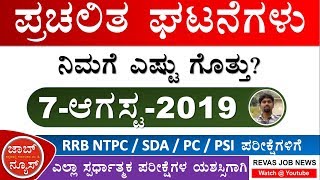 7 August 2019 Current Affairs in kannada | Daily Current Affairs in kannada August Current Affairs in kannada Revas job news current affairs in kannada ...