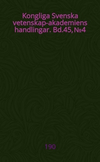 Серии: ; Kongliga Svenska vetenskaps- akademiens handlingar