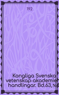 Серии: ; Kongliga Svenska vetenskaps- akademiens handlingar