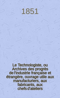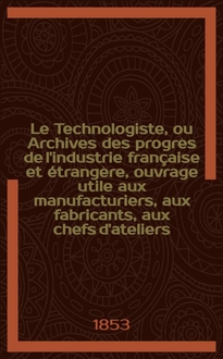 Серии: ; Le Technologiste, ou Archives des progrès de l'industrie française et étrangère, ouvrage utile aux manufacturiers, aux fabricants, aux chefs d'ateliers, aux ingénieurs, aux mécaniciens, aux artistes, aux ouvriers