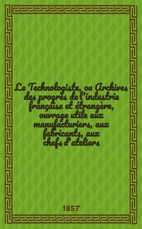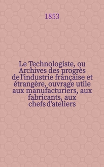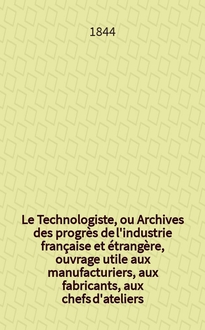 Серии: ; Le Technologiste, ou Archives des progrès de l'industrie française et étrangère, ouvrage utile aux manufacturiers, aux fabricants, aux chefs d'ateliers, aux ingénieurs, aux mécaniciens, aux artistes, aux ouvriers