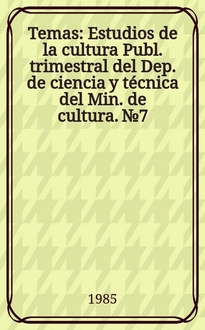 Temas : Estudios de la cultura Publ. trimestral del Dep. de ciencia y técnica del Min. de cultura. 1999, №18/19