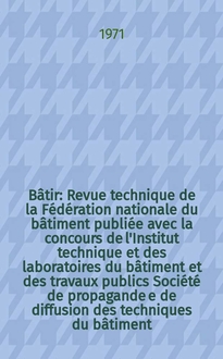 Bâtir : Revue technique de la Fédération nationale du bâtiment publiée avec la concours de l'Institut technique et des laboratoires du bâtiment et des travaux publics : Société de propagande e de diffusion des techniques du bâtiment. 1953, №34:. - 1953
