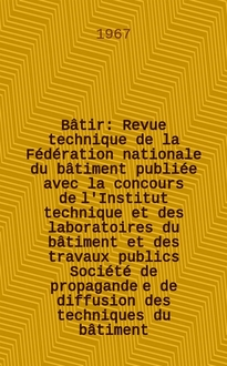 Bâtir : Revue technique de la Fédération nationale du bâtiment publiée avec la concours de l'Institut technique et des laboratoires du bâtiment et des travaux publics Société de propagande e de diffusion des techniques du bâtiment. 1965, №143