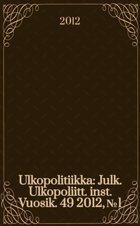 Ulkopolitiikka : Julk. Ulkopoliitt. inst.. Vuosik.37 2000, №1:. - 2000