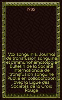 Vox sanguinis : Journal de transfusion sanguine et d'immunohématologie Bulletin de la Société internationale de transfusion sanguine Publié en collaboration avec la Ligue des Sociétés de la Croix Rouge. Vol.87, №4