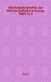 Серии: ; Vierteljahrshefte zur Wirtschaftsforschung