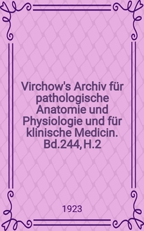 Серии: ; Virchow's Archiv für pathologische Anatomie und Physiologie und für klinische Medicin