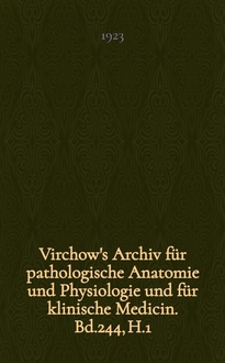 Серии: ; Virchow's Archiv für pathologische Anatomie und Physiologie und für klinische Medicin