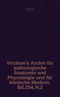 Серии: ; Virchow's Archiv für pathologische Anatomie und Physiologie und für klinische Medicin