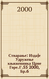 Стварање : Издаjе Удружење књижевника Црне Горе. Г.55 2000, Бр.9:. - 2000