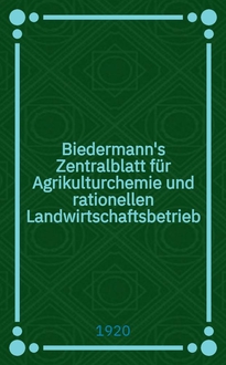 Biedermann's Zentralblatt für Agrikulturchemie und rationellen Landwirtschaftsbetrieb : Referierendes Organ für naturwissenschaftliche. Forschungen in ihren Anwendung auf die Landwirtschaft. Jg.51 1922, H.1