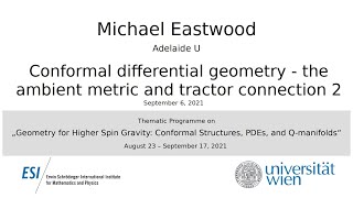 Michael Eastwood - Conformal differential geometry - the ambient metric and tractor connection 2