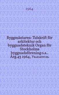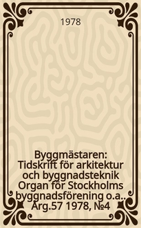 Byggmästaren : Tidskrift för arkitektur och byggnadsteknik : Organ för Stockholms byggnadsförening [o.a.] / Red. Helge Zimdah [och] Gunnar Heimbürger. Årg.50 1971, №11:. - 1971