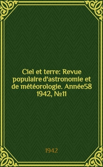 Ciel et terre : Revue populaire d'astronomie et de météorologie. Année5 1884/1885, №22:. - 1885