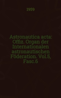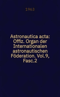 Astronautica acta : Offiz. Organ der Internationalen astronautischen Föderation. Vol.9, Fasc.3