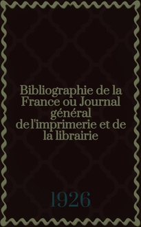 Bibliographie de la France ou Journal général de l'imprimerie et de la librairie : Livres, compositions musicales, gravures. etc. Publ. sur les documents directement fournis par le Ministère de l'intérieur. Année101 1912, T.56, №19