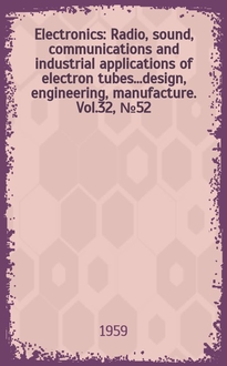 Electronics : Radio, sound, communications and industrial applications of electron tubes...design, engineering, manufacture. Vol.57, №25:. - 1984