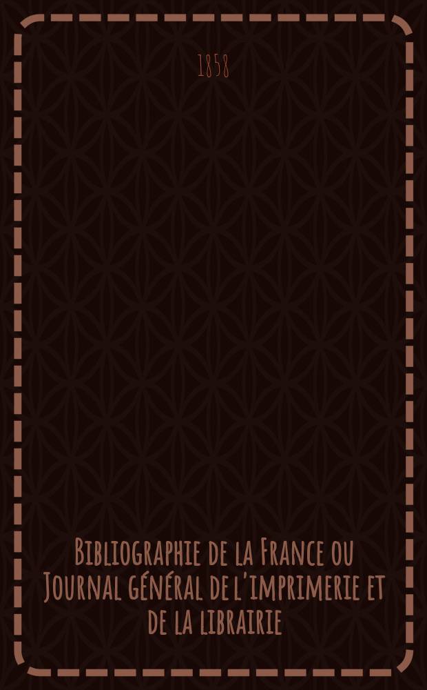 Bibliographie de la France ou Journal général de l'imprimerie et de la librairie : Livres, compositions musicales, gravures. etc. Publ. sur les documents directement fournis par le Ministère de l'intérieur. Année47 1858, T.2, №35