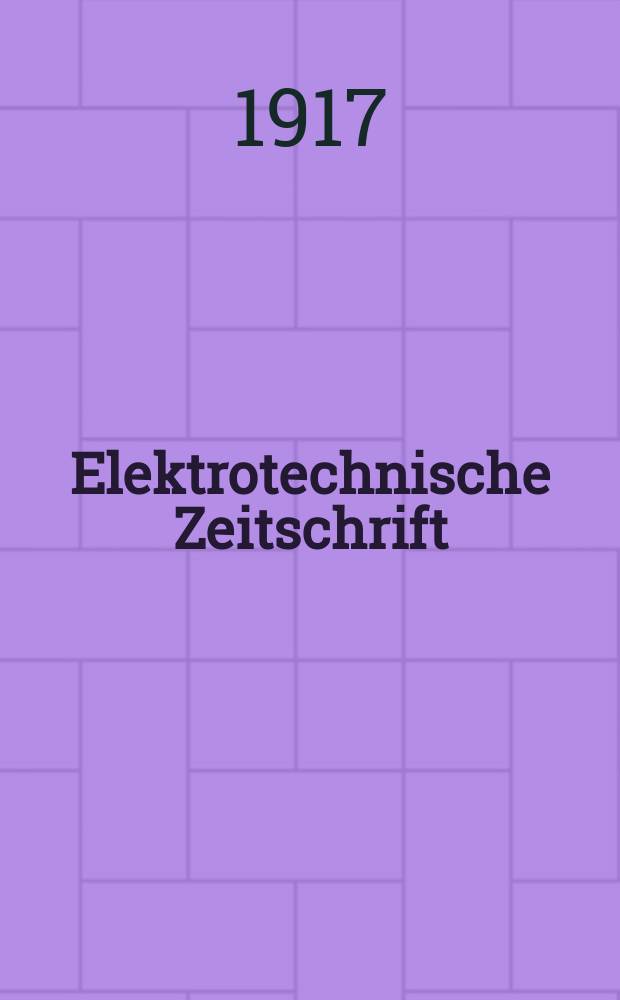 Elektrotechnische Zeitschrift : Zentralblatt für Elektrotechnik : Organ des elektrotechnischen Vereins seit 1880 und des Verbandes deutscher Elektrotechniker seit 1894 / ETZ. Jg.38 1917, H.50:. - 1917