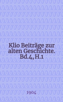 Klio Beiträge zur alten Geschichte. Bd.5, H.2:. - 1905