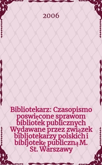 Bibliotekarz : Czasopismo poswięcone sprawom bibliotek publicznych : Wydawane przez związek bibljotekarzy polskich i bibljotekę publiczną M. St. Warszawy. 2004, № 6:. - 2004