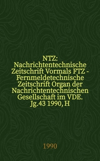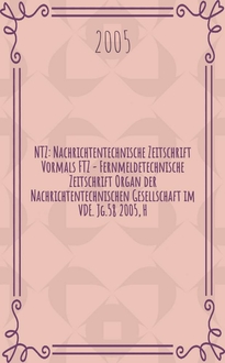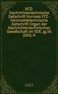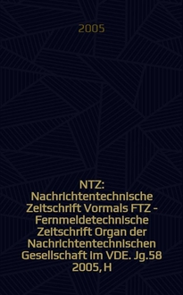 NTZ : Nachrichtentechnische Zeitschrift Vormals FTZ - Fernmeldetechnische Zeitschrift Organ der Nachrichtentechnischen Gesellschaft im VDE. Jg. 60 2007, H. 1