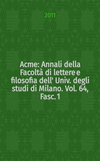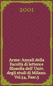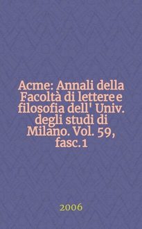 Acme : Annali della Facoltà di lettere e filosofia dell' Univ. degli studi di Milano. Vol. 62, Fasc. 3:. - 2009