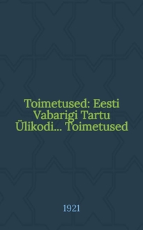 Toimetused : Eesti Vabarigi Tartu Ülikodi... Toimetused