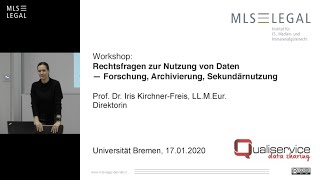 Workshop "Rechtsfragen zur Nutzung von Daten - Forschung, Archivierung, Sekundärnutzung" mit Frau Prof. Dr. Iris Kirchner-Freis, veranstaltet vom ...