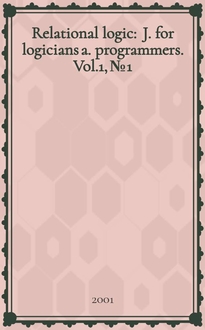 Relational logic : J. for logicians a. programmers. Vol.1, №2:. - 2001