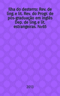 Ilha do desterro : Rev. de líng. e lit. Rev. do Progr. de pós-graduação em inglês Dep. de ling. e lit. estrangeiras. № 61 : South Africa: literature and media = Южная Африка: литература и средства массовой коммуникации