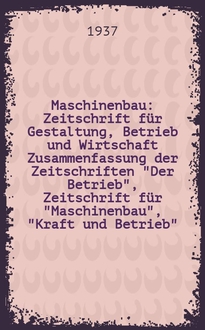 Maschinenbau : Zeitschrift für Gestaltung, Betrieb und Wirtschaft Zusammenfassung der Zeitschriften "Der Betrieb", Zeitschrift für "Maschinenbau", "Kraft und Betrieb", "Zwanglose Mitteilungen des Vereines deutscher Maschinenbau - Anstalten". Bd.7, H.12