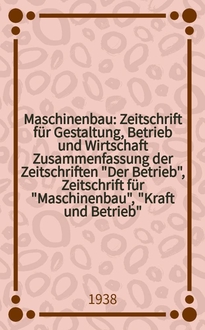 Maschinenbau : Zeitschrift für Gestaltung, Betrieb und Wirtschaft Zusammenfassung der Zeitschriften "Der Betrieb", Zeitschrift für "Maschinenbau", "Kraft und Betrieb", "Zwanglose Mitteilungen des Vereines deutscher Maschinenbau - Anstalten". Bd.12, H.20