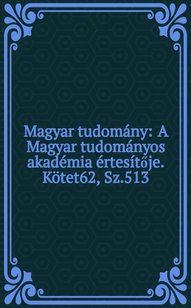 Magyar tudomány : A Magyar tudományos akadémia értesítője. Kötet62, Sz.513:. - 1955